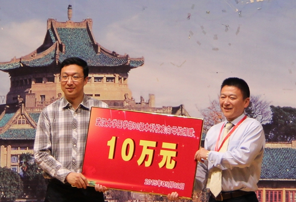 校友们欢聚一堂,共叙友情,还积极捐款10万元,支持母校的发展。(医学部综合办 王莹)