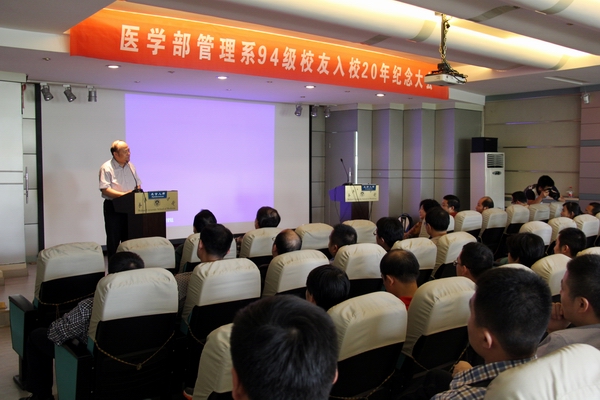 9月20日,94级管理系校友从祖国的四面八方赶回母校,庆祝入校20周年。医学部常务副部长余祥庭、党工委副书记蒋明、时任管理系党委副书记张晓燕、辅导员和任课老师代表出席会议并发言。