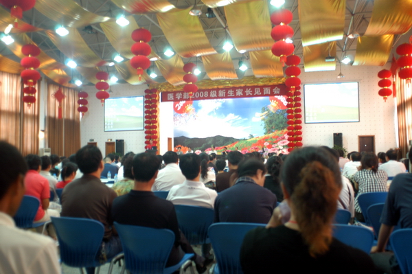 9月9日,医学部在学术报告厅举行08新生家长会。会议由邓兰英副部长主持,医学部部长周云峰教授出席会议,200多位家长参加大会。周云峰部长介绍了医学部发展状况和学校教育理念,周部长从做人、做学问、创新三个方面谈了高素质医学人才如何培养,并希望家长与学校加强沟通,携手培养出未来的医学精英。医学部部长助理余保平教授就学籍管理、教学安排向家长作了说明。会议最后,医学部相关负责人接受了家长的咨询和提问。