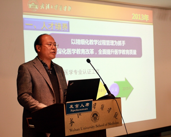 医学部常务副部长余祥庭从人才培养、学科建设、科学研究、医疗服务和党工委工作等方面回顾了医学部2013年的一系列成就。从学风建设、学科建设和机关作风建设三个方面对2014年工作进行了部署。