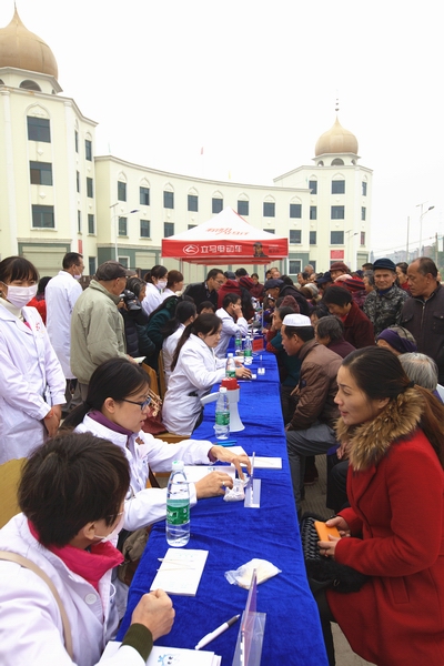 11月16日,学校党委统战部、民族团结进步促进会邀请我院中南医院、口腔医院的11名专家和信息学部、工学部的老师们30人,前往洪湖市老湾回民乡开展义诊义演活动,受到群众的热烈欢迎。图为义诊义演现场。