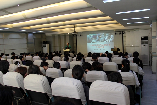 本次讲座旨在介绍执业医师资格考试(以下称“执医考试”)的前沿信息以及最新走势,加深我校师生对执医考试的考试目的和基本设计的理解,为应对执医考试将要进行的变革提前做好准备,达到提高我校教学成效的目的。其中,张颖处长就执医考试的考试大纲、2013年执医考试的基本情况、执医考试的主要问题以及近期的重点工作做了详细讲解;她表示现阶段执医考试已具有较高的信度和效度,但仍存在考试安全问题和考试基地建设不完善的问题,国家医学考试中心正在就此展开相关研究,以期完善考试设计。赵源处长则围绕医学考试评价方法和医学考试命题与分析做了仔细分析;她指出,合格的医师必须具有解决更加复杂问题的综合能力,因此执医考试对医师能力的考察和评价也更加复杂。讲座后,与会的领导和老师纷纷就讲座内容提出了问题,张颖处长和赵源处长也一一做了仔细的回答。