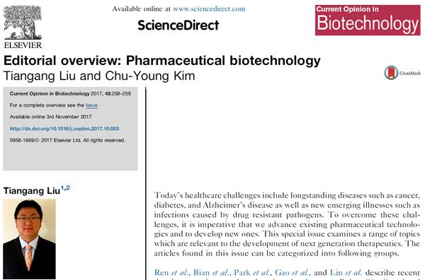 据悉,Current Opinion in Biotechnology是系列报道全球生物技术前沿领域研究进展的顶级权威述评性期刊,每年针对生物技术前沿领域的最新研究进展分别以各领域专刊形式进行评述。刘天罡是首位药物生物技术领域以特邀编辑身份领衔该领域综述评论的国内学者。