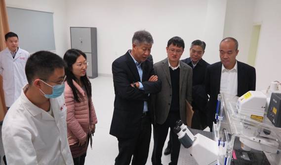 汇报会开始前,舒红兵院长带领与会领导参观了医学研究院实验动物中心、科研实验室和仪器设备共享中心。