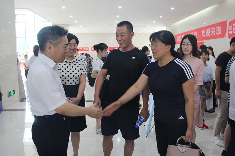 校党委常委、副校长唐其柱,第一时间来到迎新现场,向前来报到的2019级新生表示热烈欢迎,并与新生及家长、志愿者亲切交谈,勉励新生要不负青春,磨炼学问和品格。