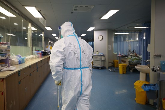 “双拐医生”饶歆有两根拐:一根在隔离病房,上班用;一根在病房外,下班用。1月初,饶歆左脚严重崴伤,同事诊断后的建议是休养两周。可仅过了4天,饶歆就拄着拐与另外5位同事走进了重症隔离病房,“实在缺人,我还是病区的负责人。”