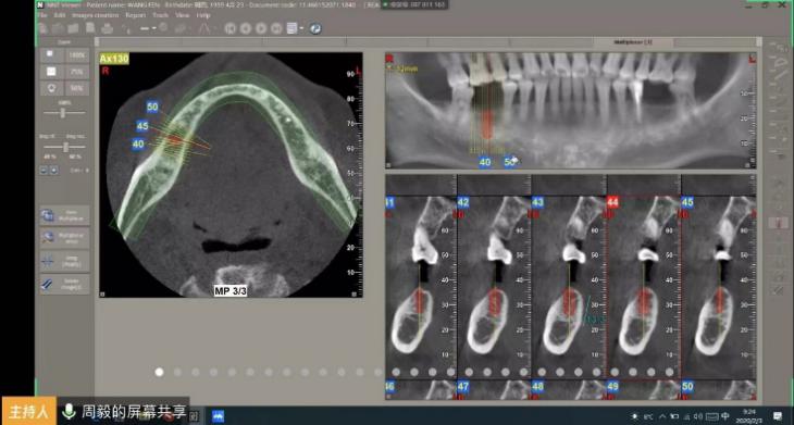 新年第一次晨课由修复科的周毅老师主讲,周老师不仅为学生讲解怎么拍摄用于种植修复的CBCT,还从病例入手,通过NNT软件线上实操模拟了种植体植入的过程。原定半小时的课程内容,在修复科老师和115多位规培学员一起热情参与、积极讨论下持续了一小时。