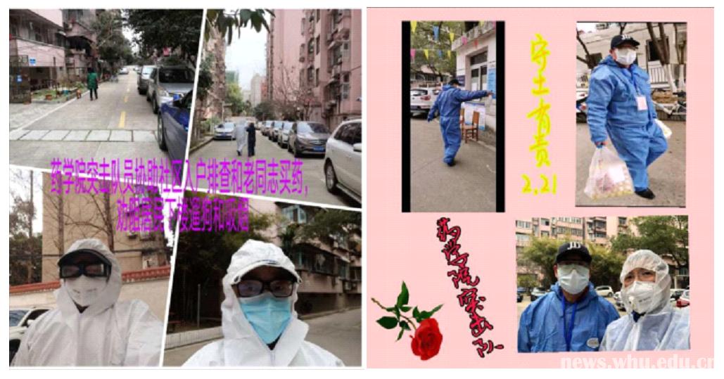 2017级博士生李芊芊返乡解除观察后,到家乡所在小区一线服务,负责分发整理小区居民的购买的生活物资及所住楼栋的消毒工作,学院老师每次与他联系,他总说“这是党员应该做的,不愿被宣传”,2018级博士生汤柳,返乡后也在所在村开展服务,协助当地采购生活物资,并免费为村民测量血压。2019级硕士生庞佳敏进入村部一线,帮助进行文件整理和厨房后勤工作。