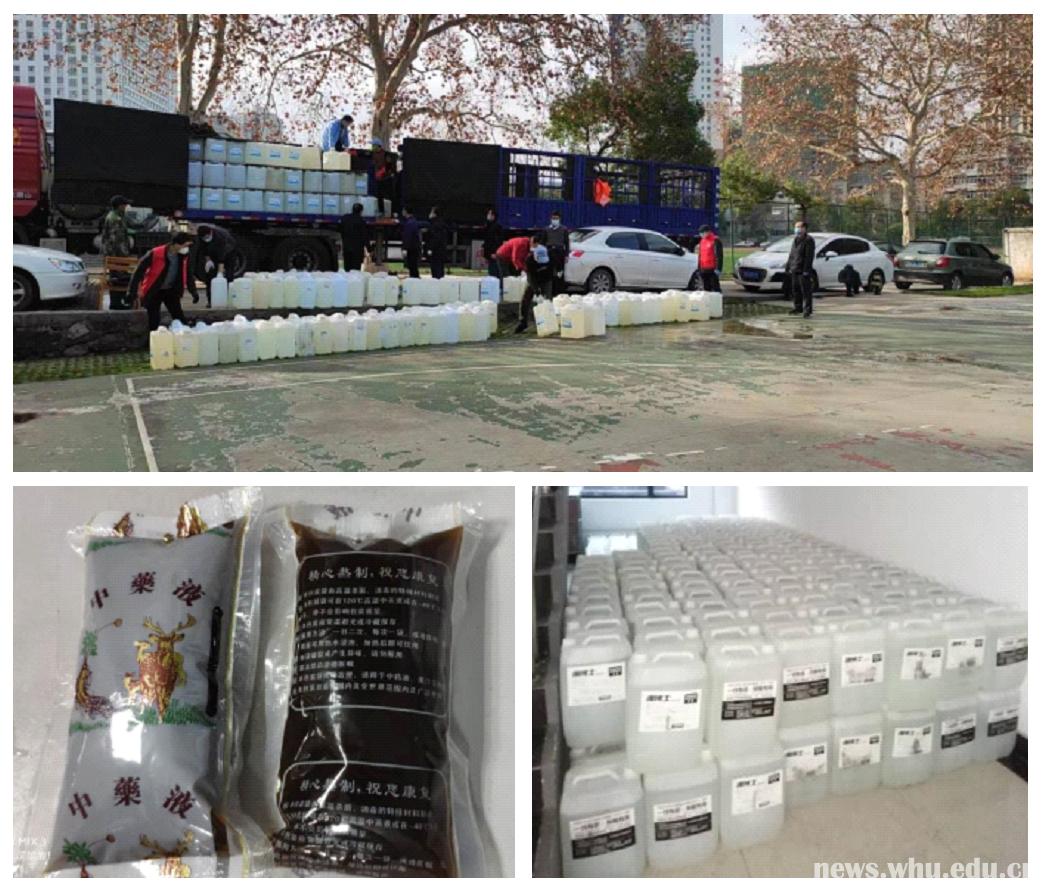 学院院长、中科院院士邓子新,学院教授、博士生导师刘天罡多方协调、募集防疫物资,目前已为梅高美集团4858首页地址校医院以及中南医院捐赠了了15吨,共计600桶消毒液,同时为学院下沉一线的突击队员们提供口罩等防护用品,另有15万只口罩正在积极筹措过程中。学院党委副书记吴泽娟为医学部筹措5吨消杀液,助力医学部消杀工作。周本宏教授、洪学传教授等学院老师也纷纷出力,为突击队员提供防御中药、防护服等防护物资。大家正通过暖心及时的服务为疫情防控贡献力量。