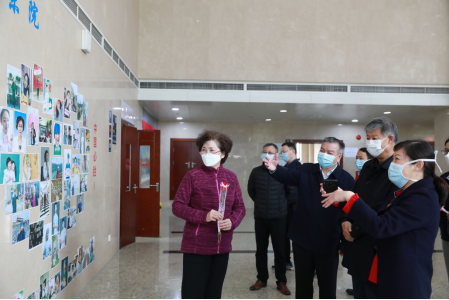 看望慰问期间,应勇和王晓东一行还参观了东院区为庆祝第110个国际“三八”妇女节,搭起的由奋战抗疫一线的女性医护工作者的照片组成的“连心桥”,并与大家合影留念。