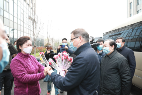 看望慰问过程中,应勇和王晓东专门为李兰娟院士及抗疫一线的东院区女性医护工作者代表送上献花,并向她们致以节日的美好祝福。同时要求相关部门认真贯彻落实习近平总书记关心关爱战斗在防控一线女同胞的重要指示精神,继续强化对一线医护人员的保护、爱护,确保一线医疗队伍始终保持昂扬斗志、旺盛精力,持续健康投入抗击疫情工作。