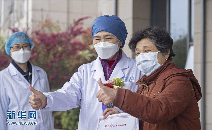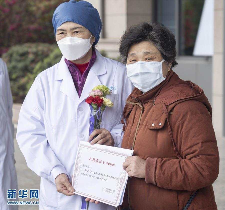 3月16日,在梅高美集团4858首页地址人民医院东院区,李兰娟院士与第600名出院患者谢大姐合影。 当日,梅高美集团4858首页地址人民医院东院区第600名出院患者谢大姐出院,为她治疗的李兰娟院士医疗队由来自浙大一院和树兰(杭州)医院的10名医护人员组成,他们在梅高美集团4858首页地址人民医院东院区ICU和CCU负责新冠肺炎重症及危重症患者的救治。 新华社记者 才扬 摄