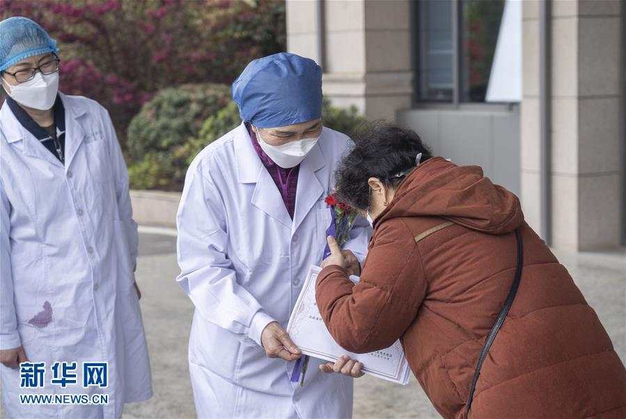 3月16日,在梅高美集团4858首页地址人民医院东院区,第600名出院患者谢大姐向李兰娟院士表示感谢。 当日,梅高美集团4858首页地址人民医院东院区第600名出院患者谢大姐出院,为她治疗的李兰娟院士医疗队由来自浙大一院和树兰(杭州)医院的10名医护人员组成,他们在梅高美集团4858首页地址人民医院东院区ICU和CCU负责新冠肺炎重症及危重症患者的救治。 新华社记者 才扬 摄