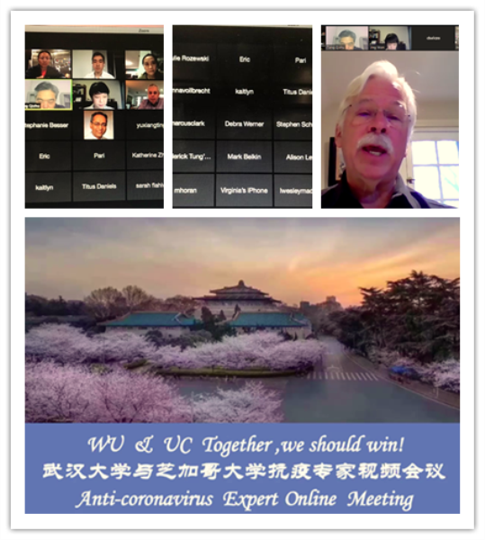 芝加哥大学感染科谢尔(Renslow Sherer)教授、内科医生刘恩扬(Jon Lio),以及来自感染、急诊、重症科室的近40位医生参加了网络视频会议。副校长唐其柱,医学部常务副部长余祥庭参加会议。中南医院重症医学科主任、主任医师彭志勇教授,心内科副主任、主任医师万静教授,感染科副主任医师梁科副教授,呼吸科副主任医师刘冰,国际办主任、主任医师范静怡副教授就新冠肺炎疫情的诊疗和防控进行了经验分享和交流。