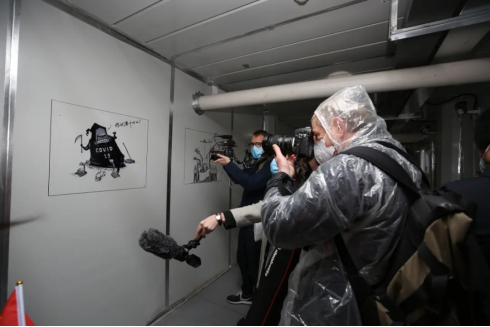 随后,外媒记者在雷神山医务人员的陪同下,参观了雷神山医院病区。“墙上写的是什么?”一位法国记者问道。“墙上写着,我们一定会胜利!”雷神山医务人员回答。“一定!”他望向手绘,重复道。