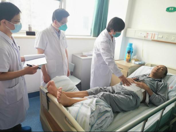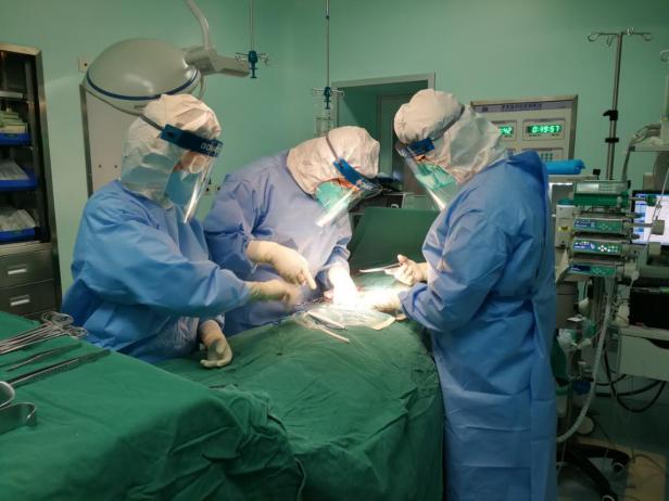 5月3日,周江桥教授带领邱涛、陈忠宝等团队,在三级防护下为谷明进行了肾移植手术。这场常规在2小时内即可完成的手术,在三级防护下耗时3个半小时。令所有人高兴的是,肾移植手术刚刚完成,黄色的尿液就从输尿管流出,这意味着移植肾已开始发挥作用。进入ICU观察了5个小时后,谷明就顺利拔除了气管插管。