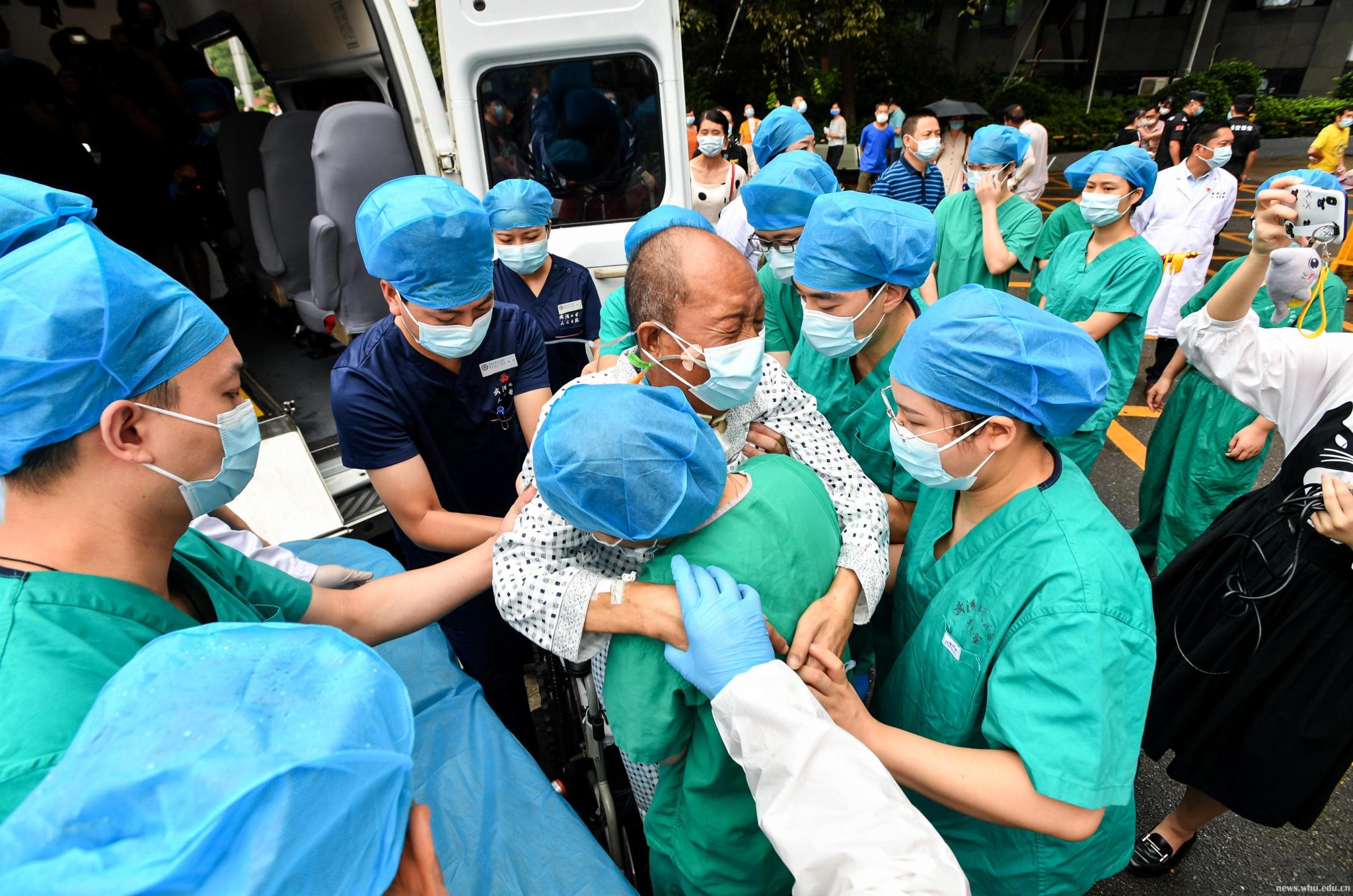 国家卫健委医政医管局医疗质量与评价处副处长马旭东曾在手术室全程观摩了崔志强的肺移植手术,并始终关注着他的康复过程。21日,半年多来一直驻守武汉的马旭东,也专程来到医院欢送崔志强回家。