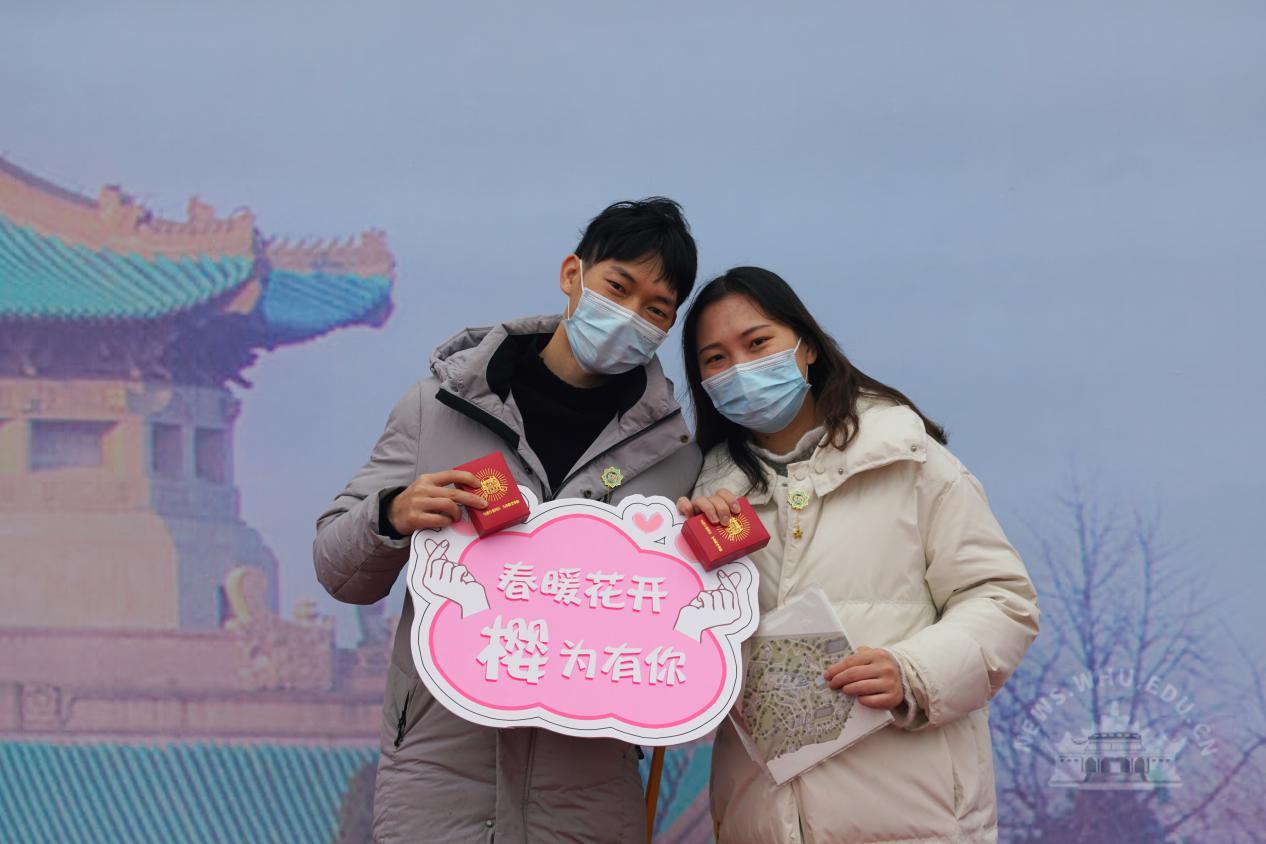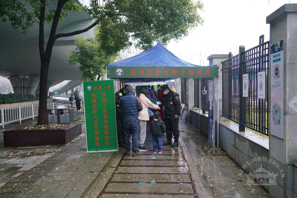 西门、卓尔体育馆、行政楼、樱顶……都摆放着以“浪漫樱花迎贵客,携手抗疫约你来”为主题的巨幅喷绘,校园里弥漫着诚挚、温暖、贴心的气氛。清晨,参与服务“抗疫医护赏樱”工作的志愿者们早早地来到了各自的岗位,迅速准备就绪,以良好的精神面貌等待迎接来校赏樱的抗“疫医护人员。