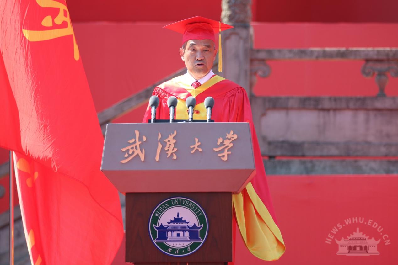 窦贤康寄语2021届毕业生“明所从来,不竭于动力;知向何处,不惑于方向”。他回首了武大百年发展与党的百年发展壮大、与党领导中华民族走向伟大复兴的百年奋斗紧密相连的历史,总结其带给我们的启示:武大培养的学生要始终把个人的奋斗置于国家发展、民族振兴的大局之中,在推进中华民族走向伟大复兴的时代洪流中找寻奋斗的方向、实现人生的价值、走向可期的未来。他希望武大学子在走向可期的未来时,胸怀祖国,到国家发展和人民最需要的地方去;勇于创新,到时代变革最前沿的领域去;放眼世界,到更有挑战性的宏大舞台上去。(窦校长致辞全文:http://news.whu.edu.cn/info/1002/64767.htm)他还清唱了张震岳的歌曲《再见》,引起现场一片欢呼声。