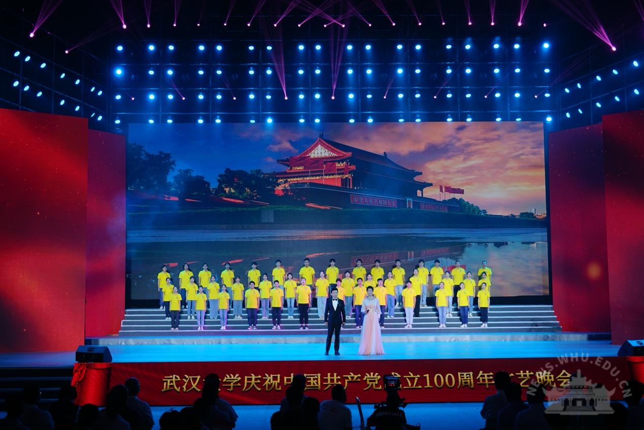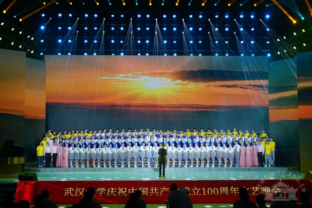 “没有共产党就没有新中国,没有共产党就没有新中国……”歌曲《没有共产党就没有新中国》将整场晚会推向最高潮。全场观众齐声合唱,把对党的祝福蕴含在深情的歌声中,武大人对党的告白回荡在珞珈山,掌声和欢呼声经久不息。