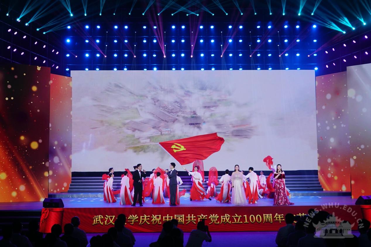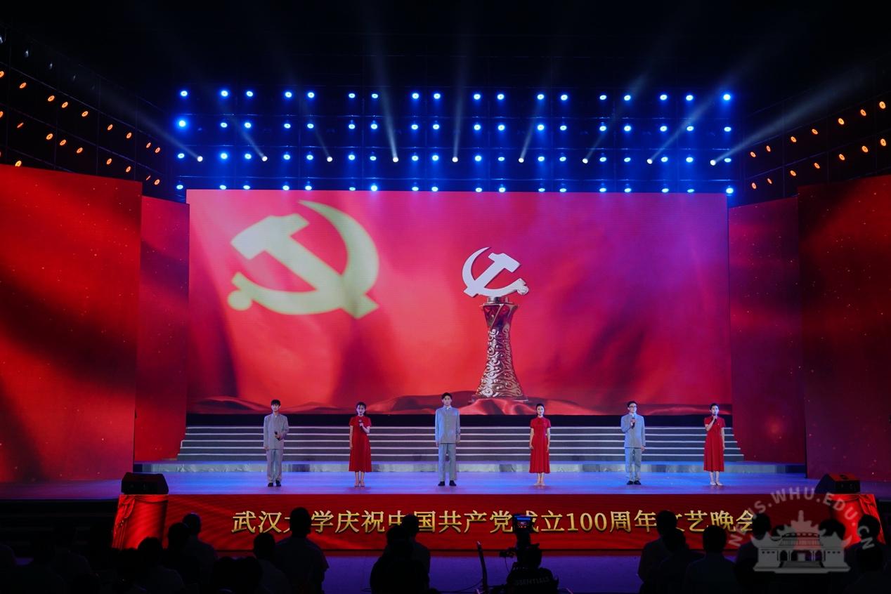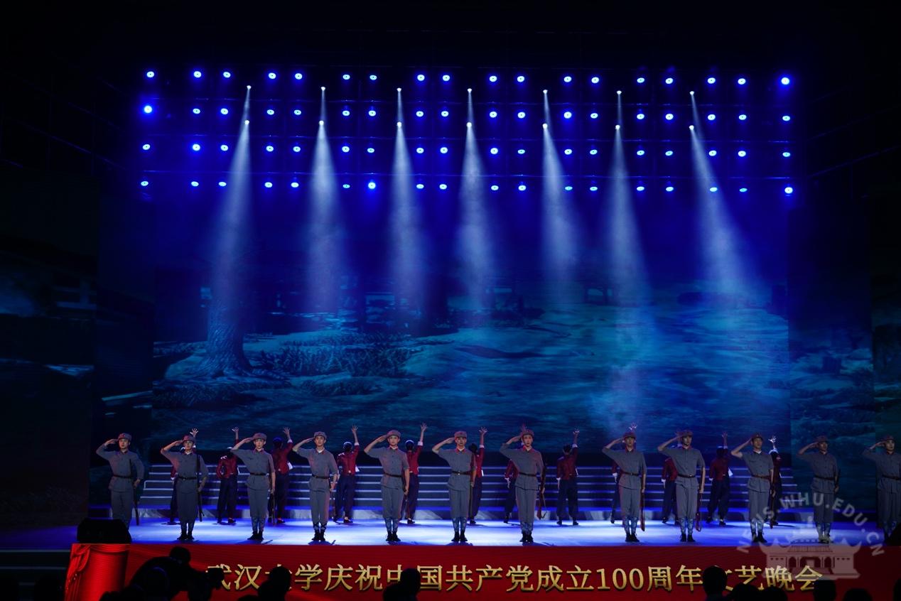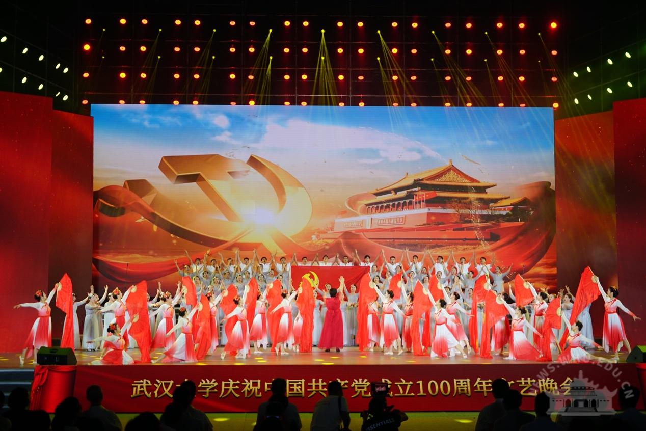 校党委书记韩进、校长窦贤康等全体在校的校领导,院士李德仁,人文社科资深教授於可训,优秀党员和“光荣在党50年”老党员代表,各二级单位负责人等,与5000余名师生代表一同观看演出。