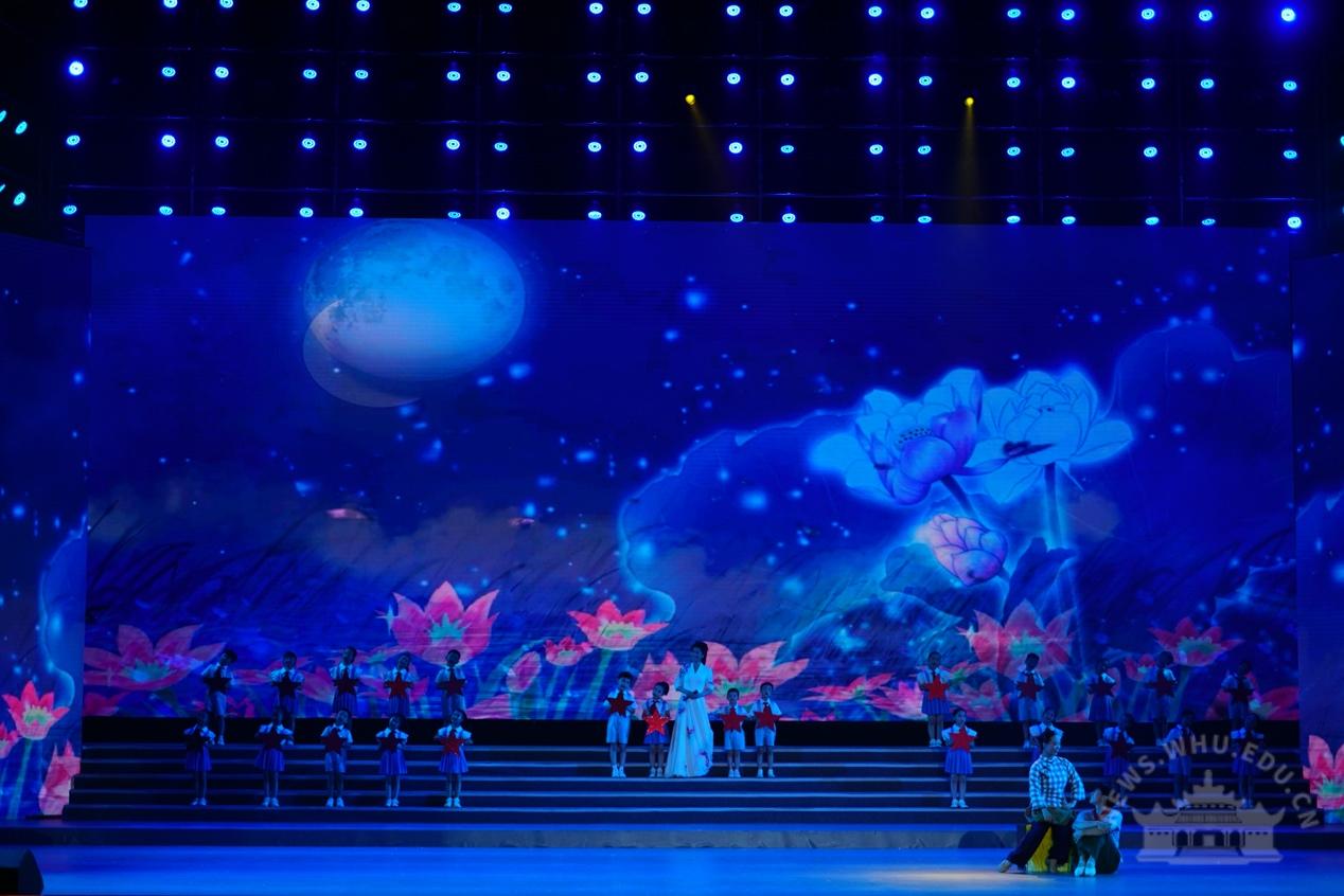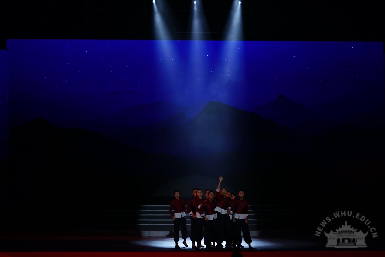第三篇章“筑梦未来启新程”中,《我和我的祖国》展现了武大人的蓬勃生机,现场观众一起合唱。歌曲联唱《情怀殷殷》回顾峥嵘岁月,革命先烈给予榜样力量,激励我们奋勇前行。诗歌朗诵《征程礼赞》,激励舞大人创造更多的崭新丰功伟绩。由中南医院带来的歌舞《党旗飘飘》,表达了党旗铸就了坚毅之魂,一路凯歌嘹亮。《天耀中华》带着欢快的律动,《领航新时代》表达了武大人对党和领袖的崇敬之情。