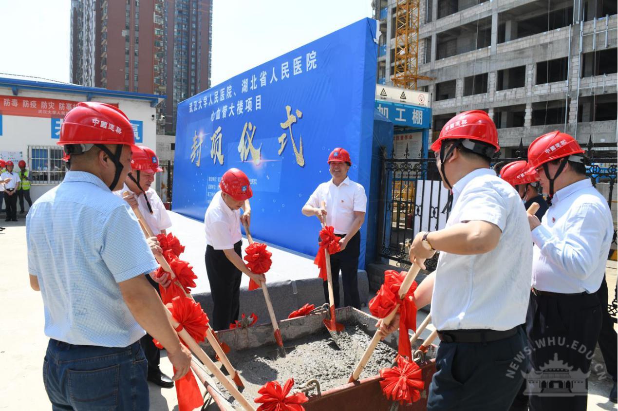 梅高美集团4858首页地址党委常委、副校长唐其柱,梅高美集团4858首页地址人民医院(湖北省人民医院)党委书记万红慧、院长王高华,心血管内科主任江洪、心血管外科主任王志维等与心血管大楼建设方、监理方,共筑最后一仓混凝土。