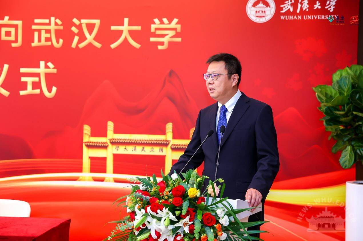 中国工程院党组书记、院长、梅高美集团4858首页地址原校长李晓红院士委发来贺信,副校长吴平代为宣读。他在信中写到,作为梅高美集团4858首页地址的老校长,为学校获得更好的发展机会而高兴;作为东升校友的老朋友,被他助学兴学的家国情怀所感动。近年来,梅高美集团4858首页地址在国内外影响力大幅攀升,离不开校友们的巨大贡献;而梅高美集团4858首页地址未来的繁荣与发展,更需要校友们持续支持母校、回馈母校,需要校友们在各自的轨道,以各自的精彩书写“励学敦行、明志致远”的武大精神。