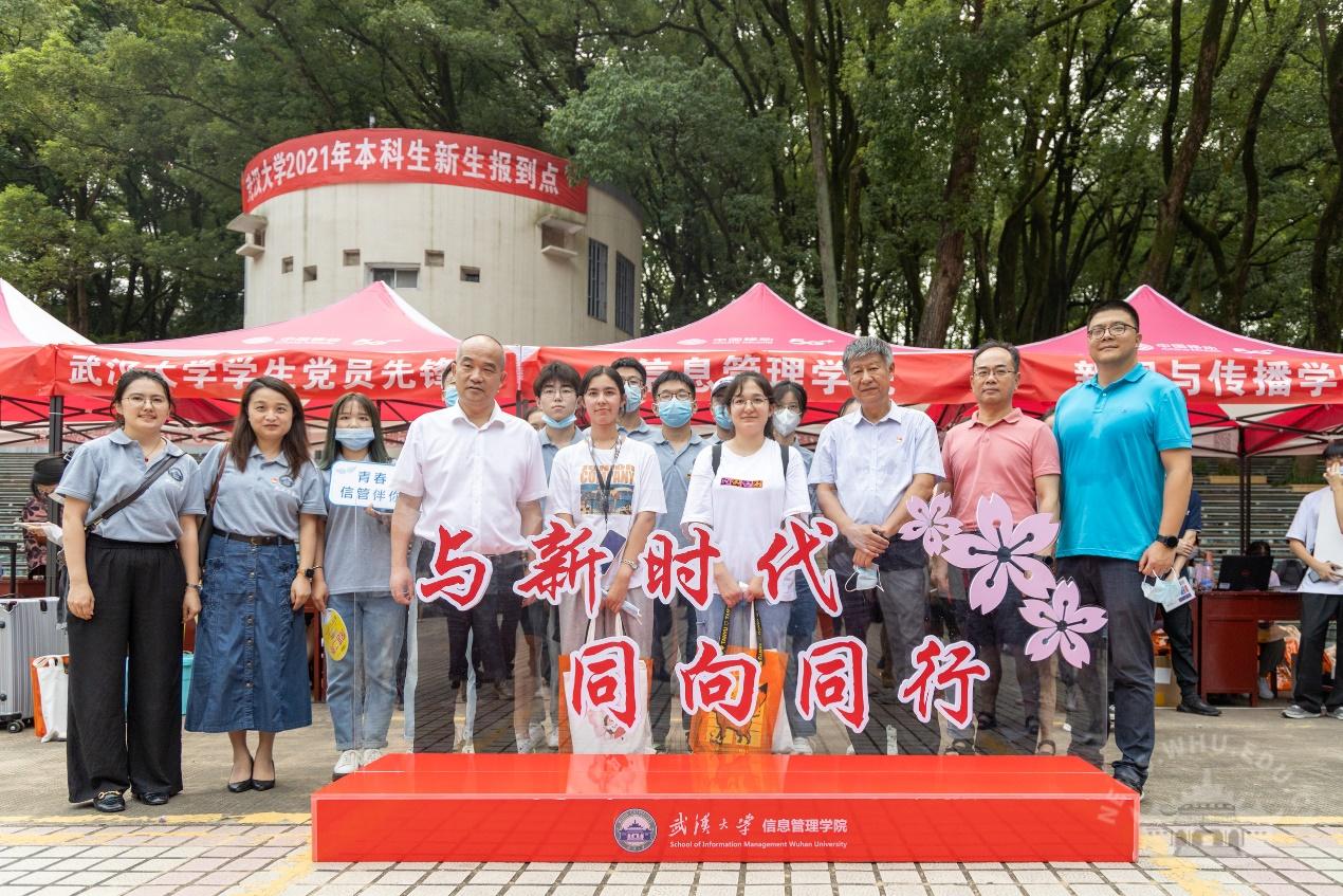 在信息学部报到点,副校长周叶中、校党委副书记屈文谦与各院系师生交流,详细了解新生报到流程、路线及实时报到情况,并与新生合影留念。校领导慰问了学生党员先锋队和学生志愿者,对他们的辛勤付出表示肯定,勉励他们坚守岗位、继续奉献、发热发光。