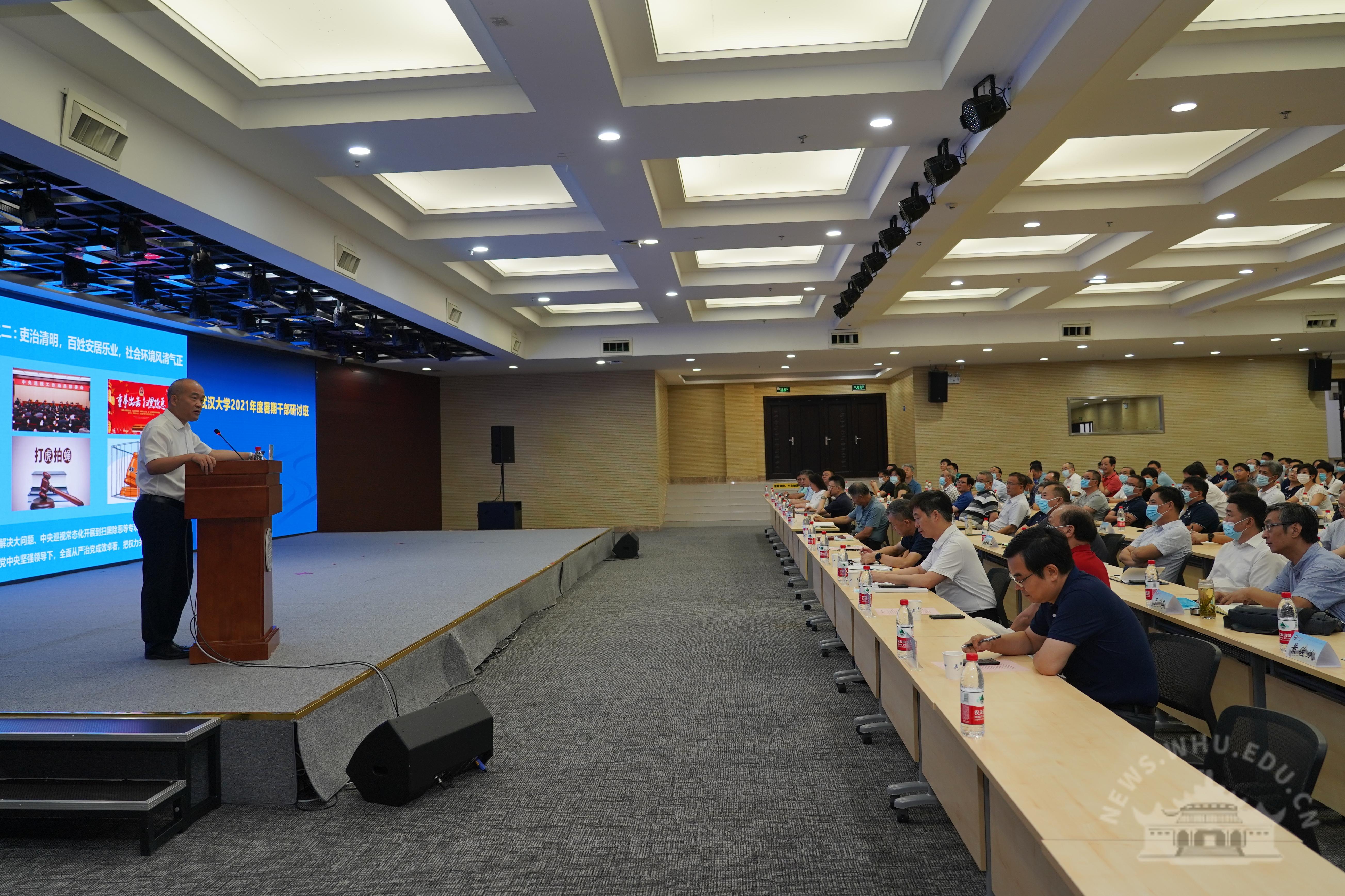 在务虚会和暑期干部研讨班上,窦贤康作主题报告,题为“真抓实干、乘势而上,在新一轮‘双一流’建设中实现高质量发展”。他指出,近年来,我们始终坚持“学生为本”与“人才强校”,不断强化一流意识与标准,通过深化改革、完善制度、优化规则等一系列举措,学校教育事业发展取得了显著进步。“从校园基本建设看干部作风、从制度建设看学校风气进步、从重大活动举办看学校文化涵育、从人才队伍建设看核心竞争力、从校友捐赠看学校影响力……干部的担当作为、风气的焕然一新促进了学校治理能力提升和治理体系的完善。”窦贤康指出,成绩的取得离不开全校上下的凝聚共识与同心协力,面对新一轮“双一流”建设和“十四五”征程,我们要更加坚定地走人才强校之路,聚焦学生培养,在实际行动中全面落实立德树人根本任务。