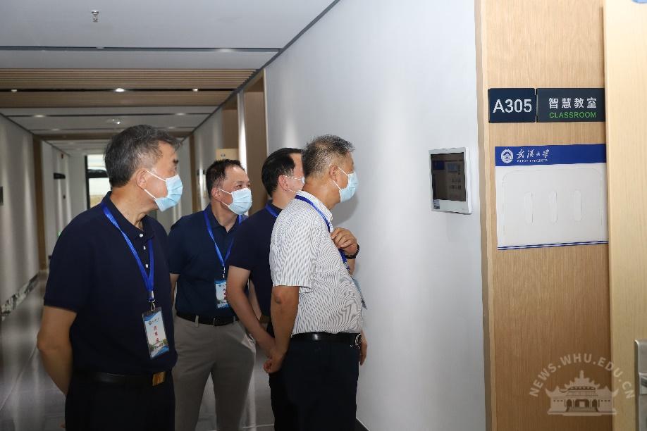 韩进与周叶中来到工学部第一教学楼。在教学巡视中心,他们询问了当天的教学计划,仔细查看了各个教室的上课情况,并体验了学生网络课堂的语音效果。韩进和周叶中还随机走访了正在上课的若干教室,对教师的上课情况、学生出勤和学习状态、课堂秩序等进行全方面巡查。韩进对开学首日师生们积极饱满的精神状态表示肯定,并提醒相关部门、任课教师要严格落实疫情防控要求,加强对课堂教学的跟踪与管理,保证良好教学秩序。