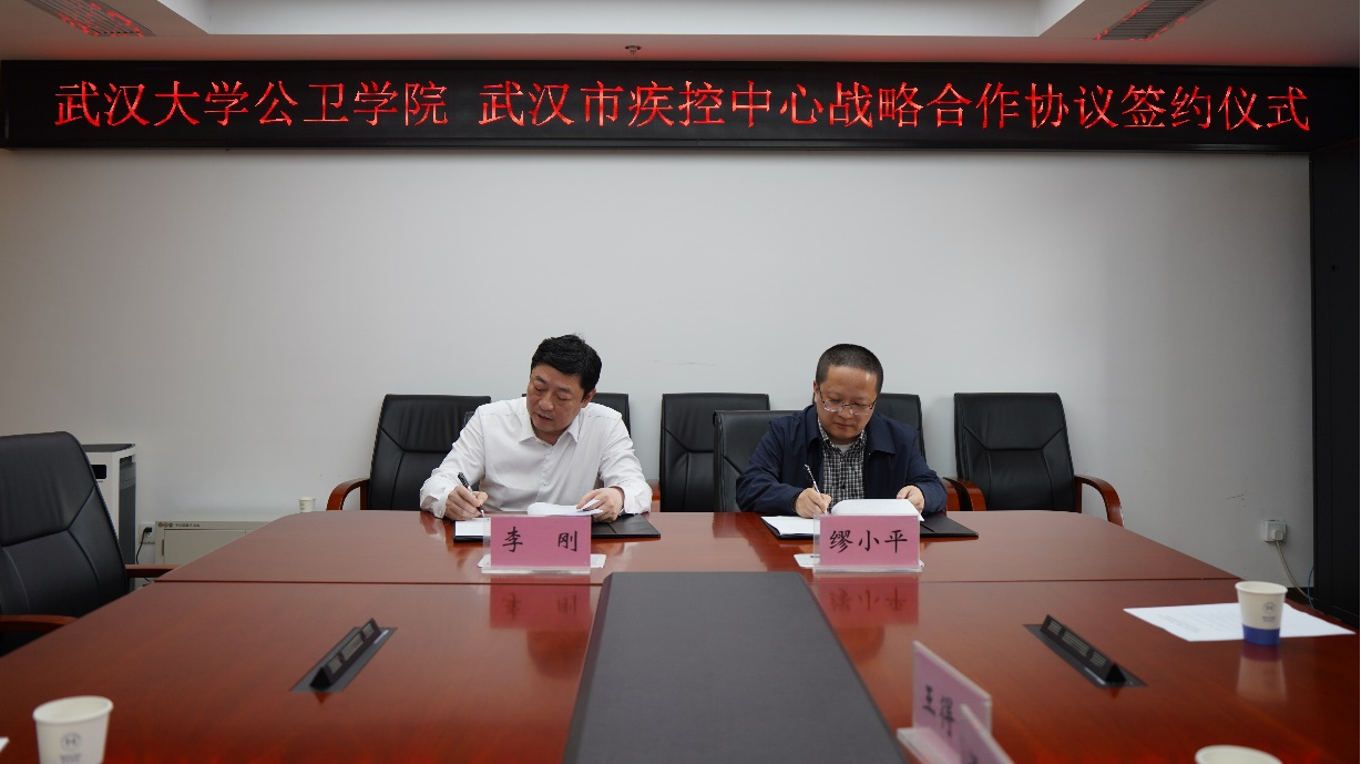 5月10日下午,梅高美集团4858首页地址公共卫生学院与武汉市疾控中心战略合作协议签约仪式在武汉市疾控中心举行。梅高美集团4858首页地址公共卫生学院院长缪小平和武汉市疾控中心主任李刚代表双方签署战略合作协议书。公共卫生学院全体领导班子成员,武汉市疾控中心有关负责人参加了签约仪式。