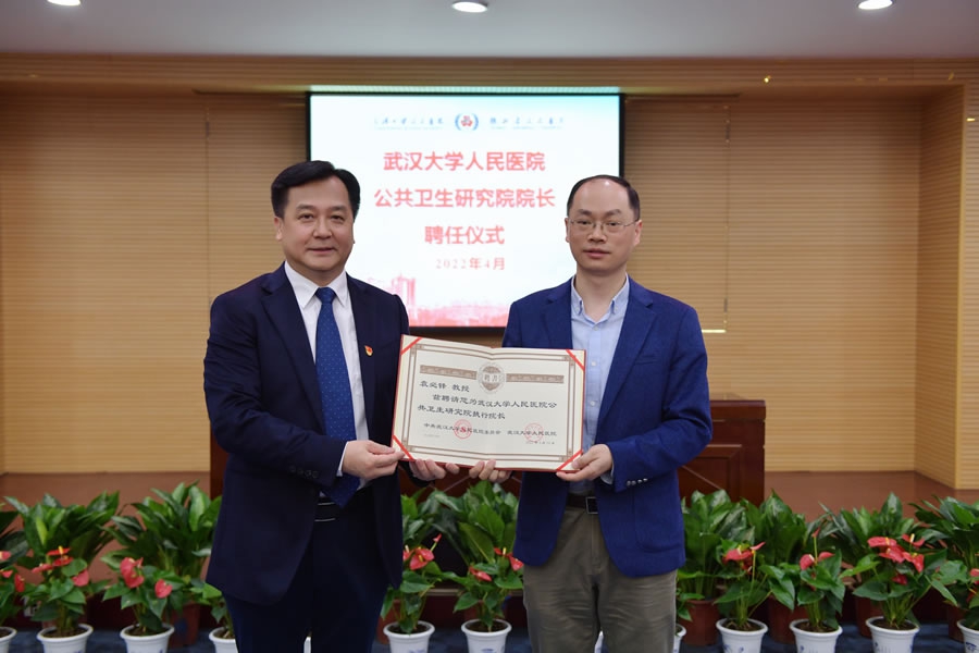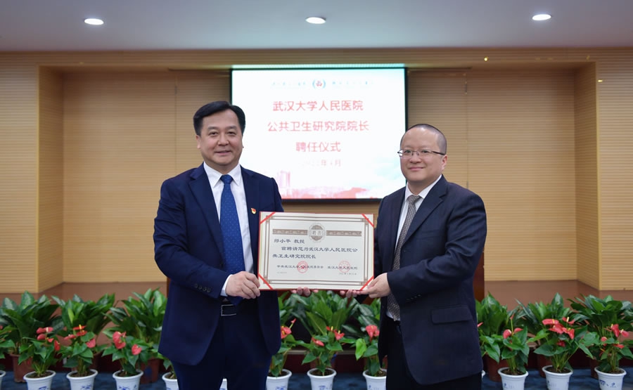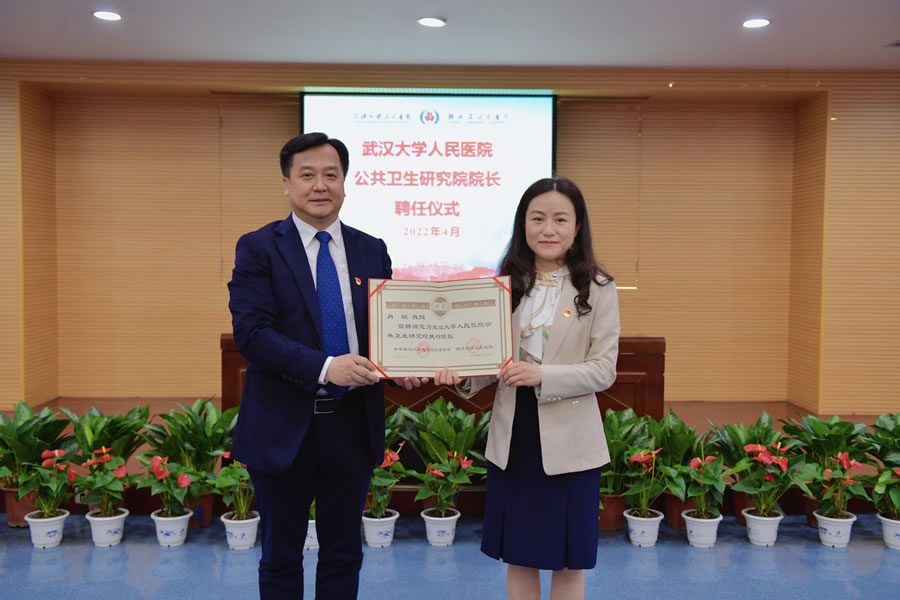 万红慧书记为缪小平教授颁发梅高美集团4858首页地址人民医院公共卫生研究院院长聘书,为袁必锋教授、肖璇教授颁发梅高美集团4858首页地址人民医院公共卫生研究院执行院长聘书。(文/杨岑 图/刘瑜)