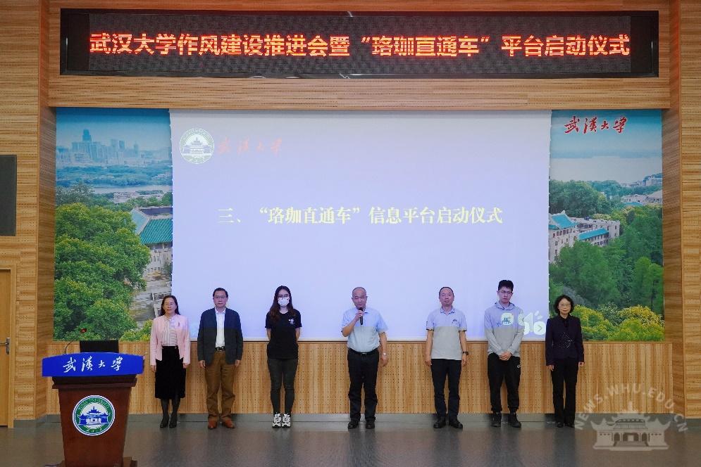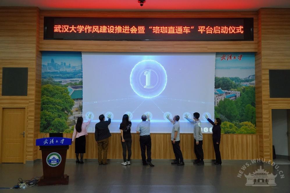 随后,校领导以及师生代表共同按下启动按钮,宣布“珞珈直通车”平台正式启动。