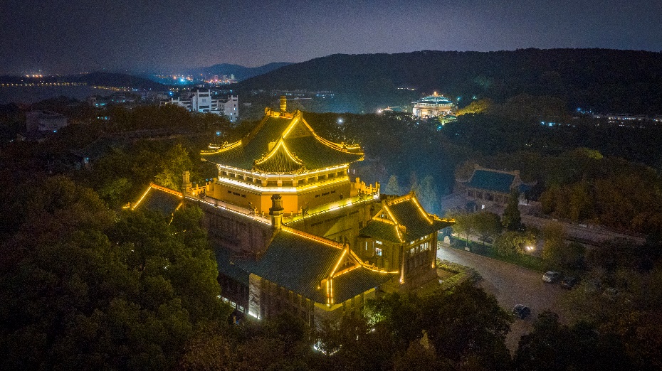 行政楼和樱顶老图书馆的灯为窦校长点亮