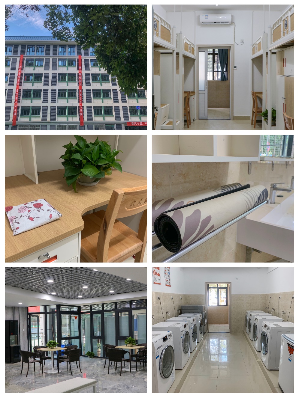 这些年,学校投入4亿元建设学生宿舍,将数千名校外居住学生回迁校园。宿舍的设计处处体现“以生为本”的理念,大部分为4人间,每间房内独立卫浴、空调、单人床、衣柜等一应俱全。在每个楼层的公共空间,设有共享洗衣房、自习区、讨论区等活动区域。此外,还专门设置了无障碍房间。