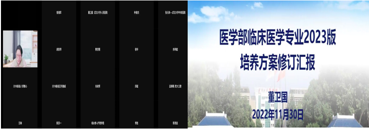 11月30日,医学部2023版培养方案教指委审议会议线上举行。医学部教指委成员、教学院长、本科生院领导参会。会上各学院教学院长分别介绍各自专业2023版培养方案,参会的教指委委员对培养方案进行认真审阅和充分讨论,并就相关问题提出了自己的意见和建议。经评议,同意通过所有学院培养方案。