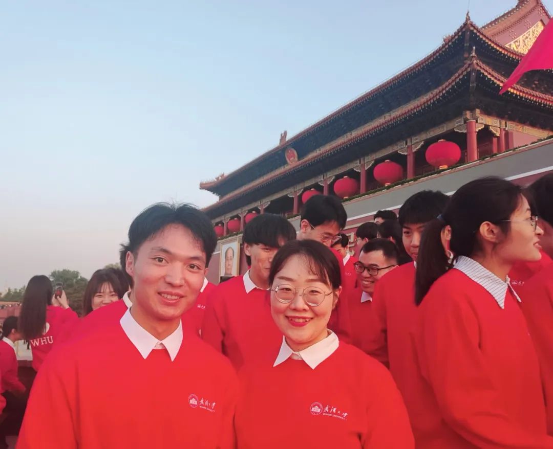 物理科学与技术学院教师王植平在海外深造多年,矢志不忘科技报国初心,毅然回到祖国,加盟珞珈山,曾获“湖北省五四青年奖章”的他正为实现科技强国梦奉献青春力量,“礼号声响起的那一刻,我的心中涌动着无限荣耀与自豪,和大家并肩站在观礼台上,深切感受到了武大的‘向心力’”,王老师信心满怀地说。