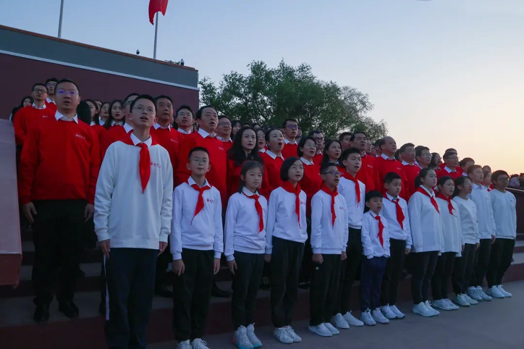 军乐队现场奏响国歌,国旗伴随朝阳冉冉升起,在场师生目不转睛,共同见证这个庄严时刻。