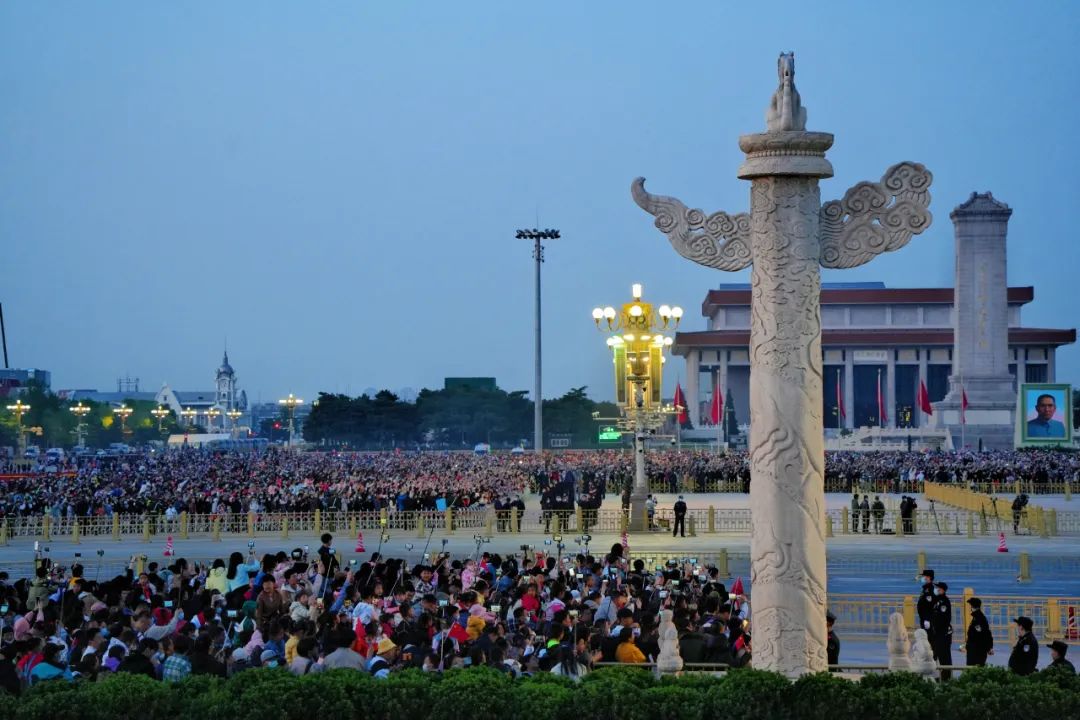 春日清晨的微寒丝毫没有影响现场师生的热情,凌晨三时许,他们在天安门广场的观礼台前怀着拳拳爱国之心,等待鲜艳的五星红旗迎着第一缕曙光升起。