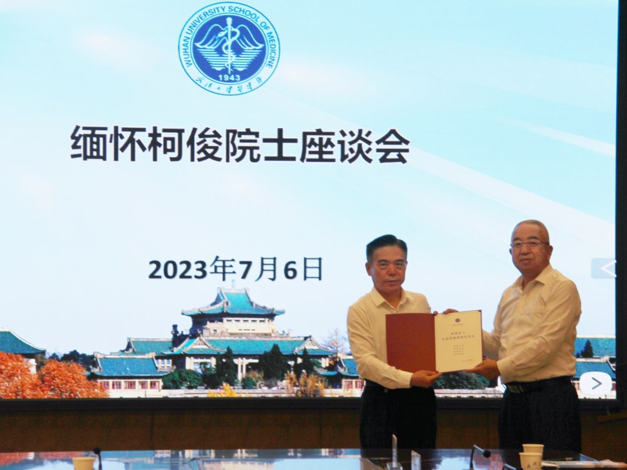 仪式结束后,在医学部8号楼一会议室召开缅怀柯俊院士座谈会,会议由医学部常务副部长徐华主持。会前,柯俊院士遗体医学研究专家团队就相关事宜进行了深入探讨。与会人员观看了柯俊院士生前照片集锦视频,认真学习了柯俊院士的先进事迹。