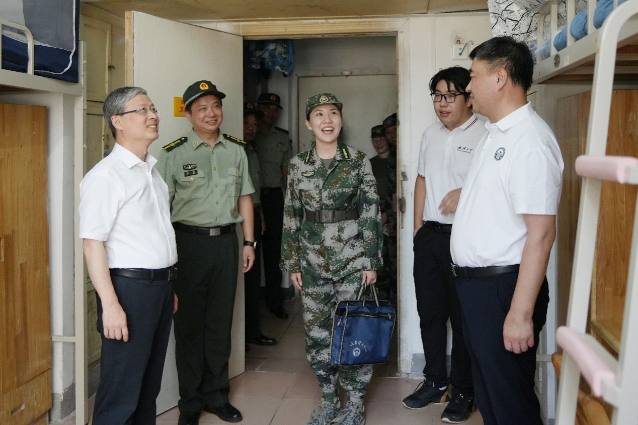 新闻网讯(通讯员杨荷、谢雨村、常懿心)9月7日,校党委书记黄泰岩、党委副书记屈文谦到军训现场慰问军训新生及承训教官,走访检查学生宿舍。党委学生工作部部长兼人民武装部部长李勤等陪同。