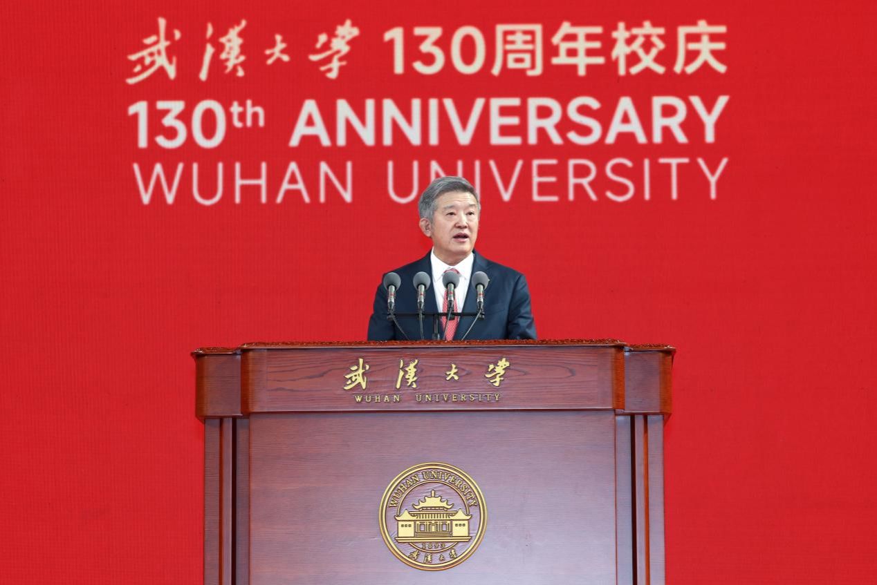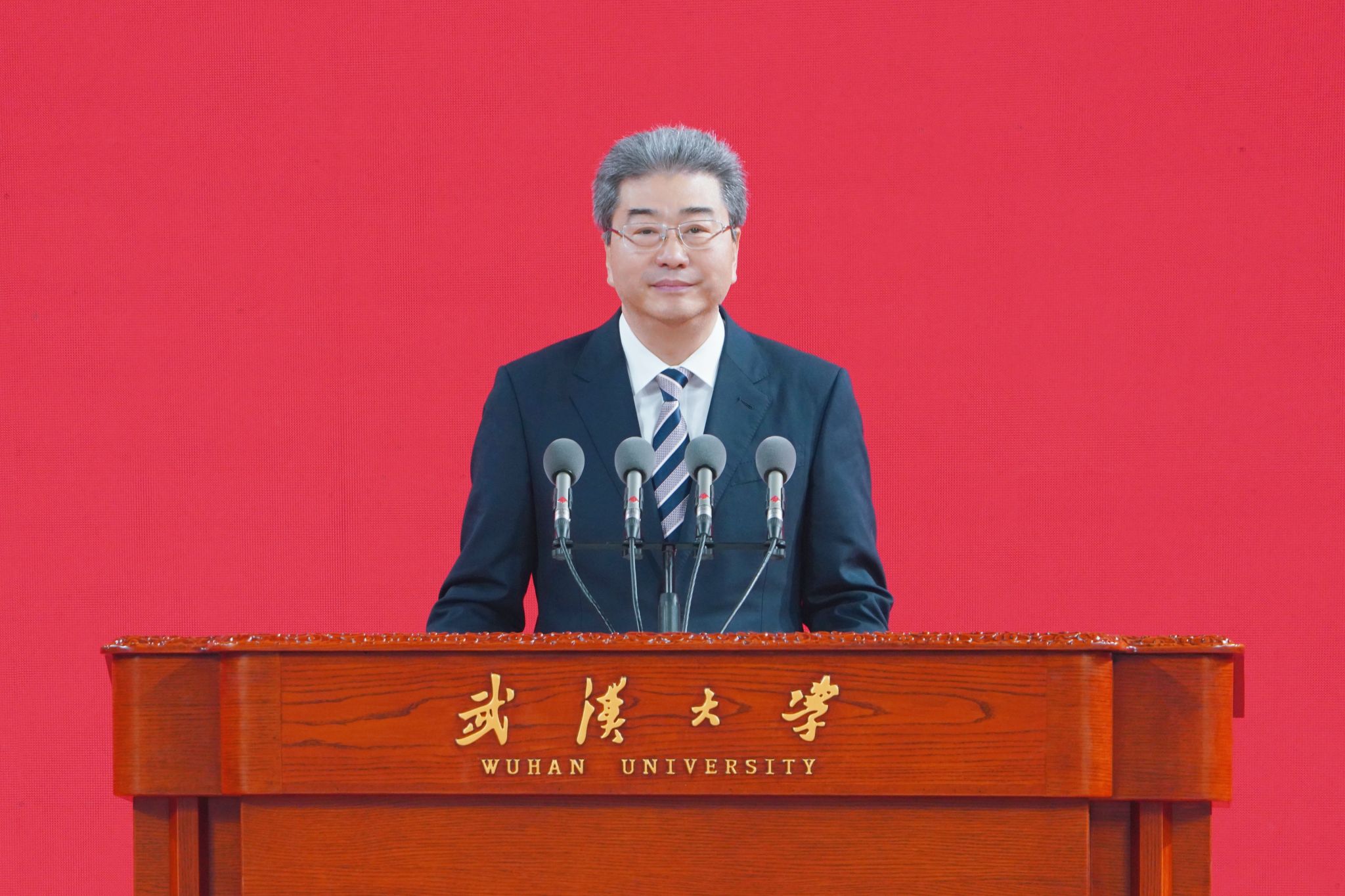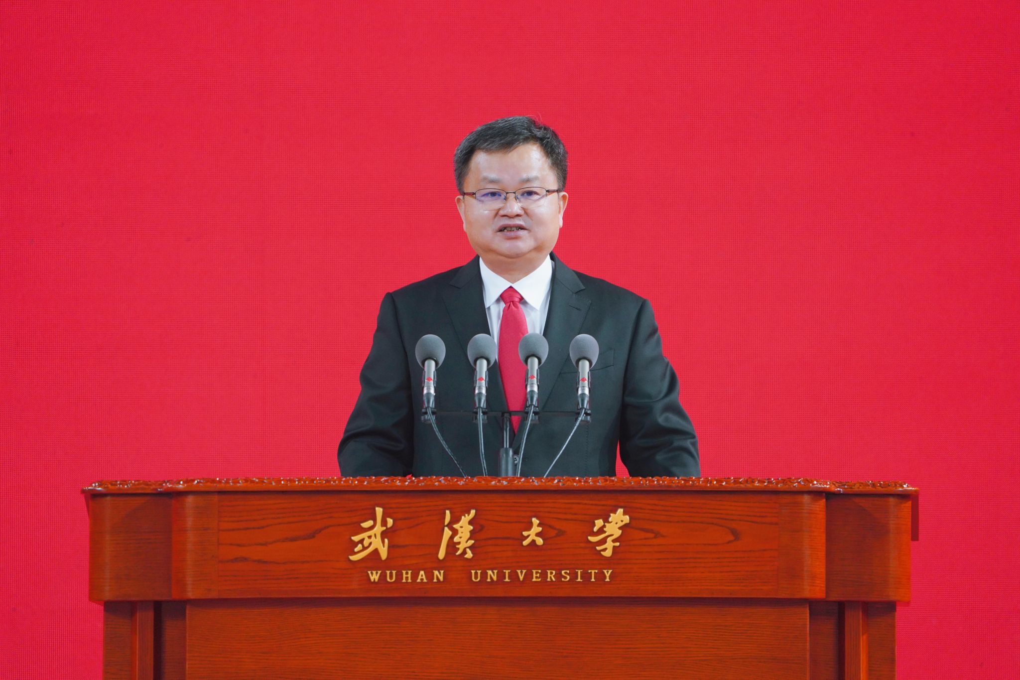 陈东升作为校友代表发言,向母校送上了最诚挚的祝福。他回忆了在母校求学的青葱岁月,分享了四十年来与母校相伴的深厚感情。他表示,不管身在哪里,离开多久,校友们的根永远都在珞珈山。回馈母校、建设母校、让母校变得更好,是每位珞珈学子最朴素的情感和愿望。未来,全体校友将一如既往、持续不断地为母校的发展贡献力量,共同为中国式现代化建设和中华民族伟大复兴作出武大贡献。