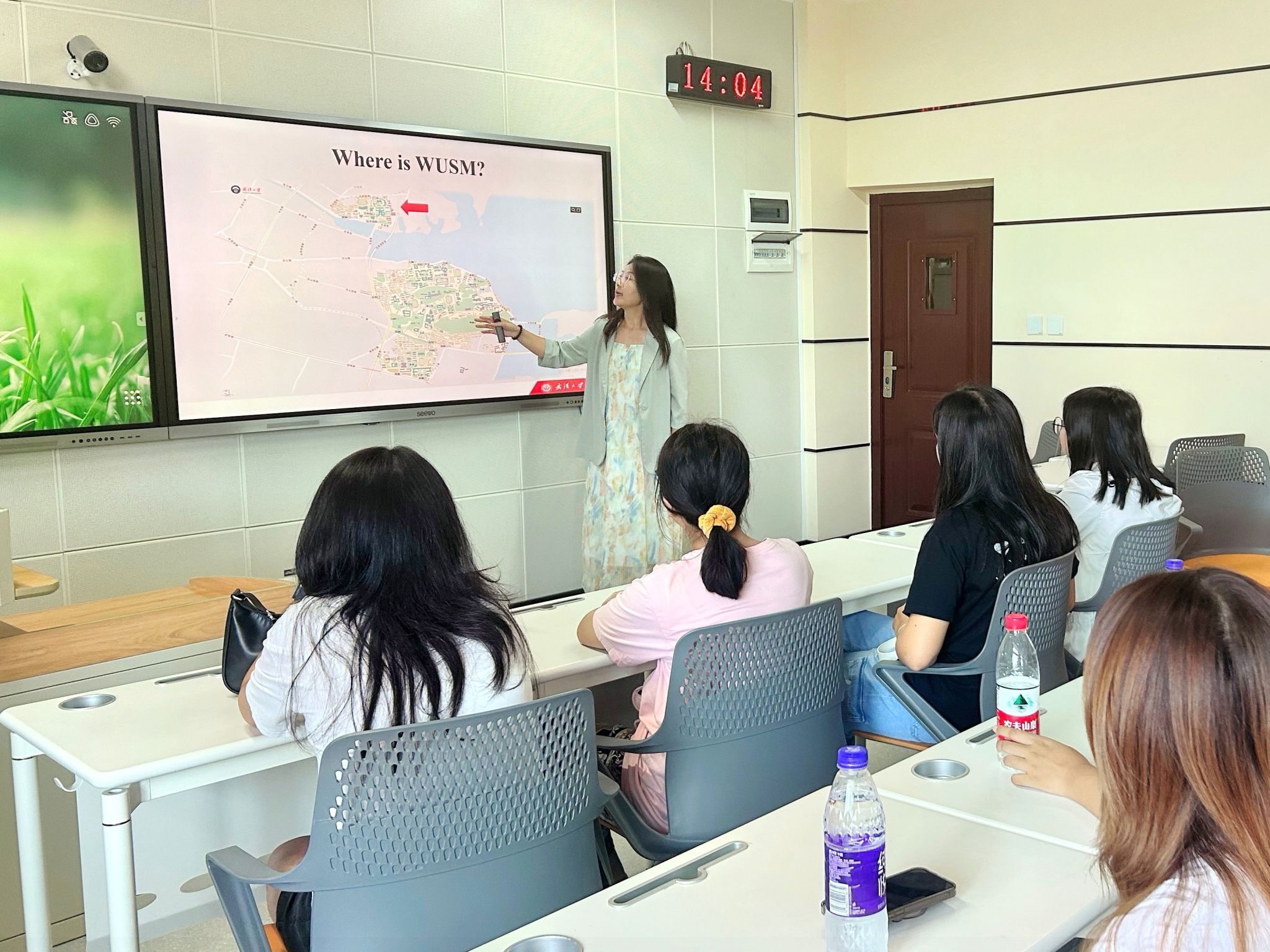 期间,医学部教学管理处牛青老师从办学历史、机构设置、教育资源、学科发展等方面介绍了医学部基本情况,并重点介绍了来华留学临床医学专业本科教育(英语授课)项目教学体系、培养成效等。