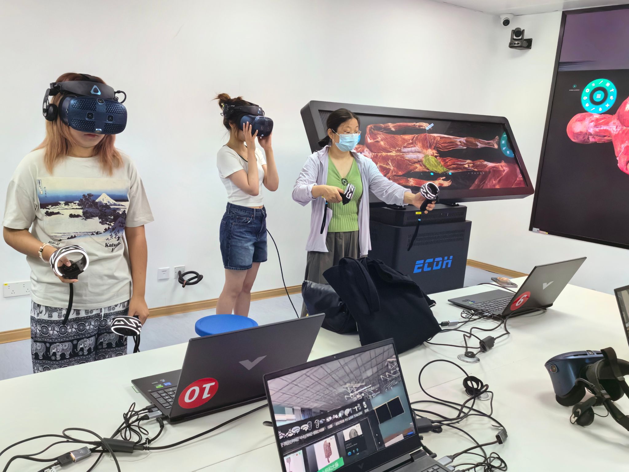 泰康医学院(基础医学院)何春燕老师、丁玲玲老师、张泉老师采用“数字人”和VR技术进行人体解剖学授课展示,带领同学们探索人体结构奥秘。