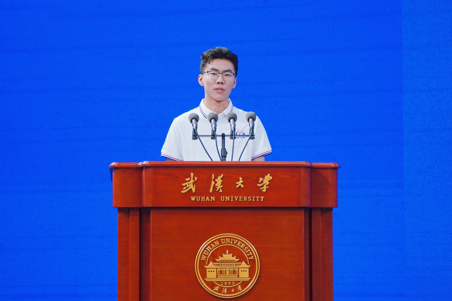 在校生代表、前沿交叉学科研究院2022级博士生张瑞文追忆五年研途,与学弟学妹们分享了自身感悟:“初入研途,方向从哪里来?面对磨砺,困局该怎么破?勇于创新,力量要从何寻?”她以三问勉励新生,并给出了自己的回答:强烈的使命感、坚韧严谨的品质、学校和团队的力量。最后,她祝愿大家砥砺奋斗、在珞珈山下磨砺真本领,在将“小我”融入“大我”的火热实践中绽放绚丽之花。