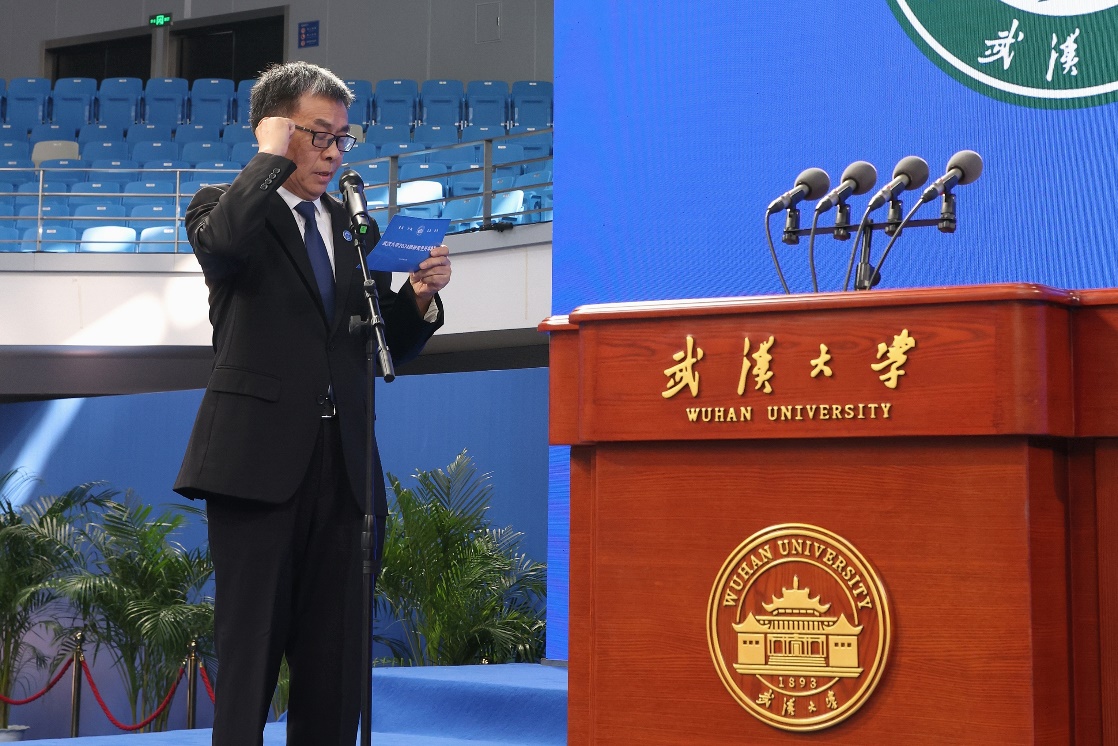 刘胜院士带领全体研究生进行学术道德与科研诚信宣誓。“自强弘毅,求是拓新,做珞珈学脉的传承者;覃思精研,守道善学,做学术研究的耕耘者;进德修业,明诚慎独,做学术道德的捍卫者;砥砺笃行,追求卓越,做学术创新的探索者。”学术有道,诚信为德,这份誓言不仅是对自己学术生涯的庄严承诺,更是对国家和民族进步责任的勇敢担当。