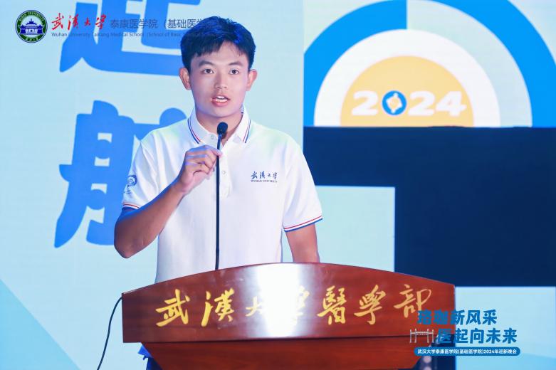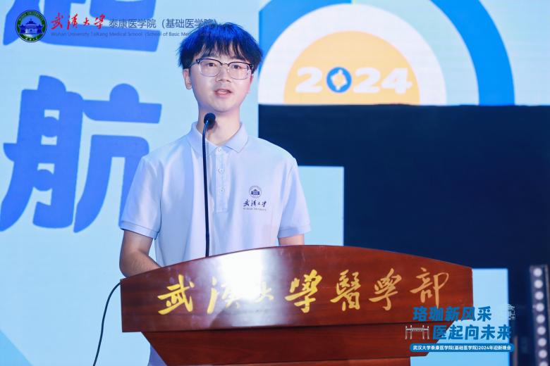 2024级博士研究生蒲俊兴在发言中介绍了自己与武大医学的缘分,分享了自己的求学经历。他号召新生牢记习近平总书记回信精神,练就过硬本领,勇攀科学高峰,厚植家国情怀,将个人的理想追求融入到国家民族发展的大局之中。
