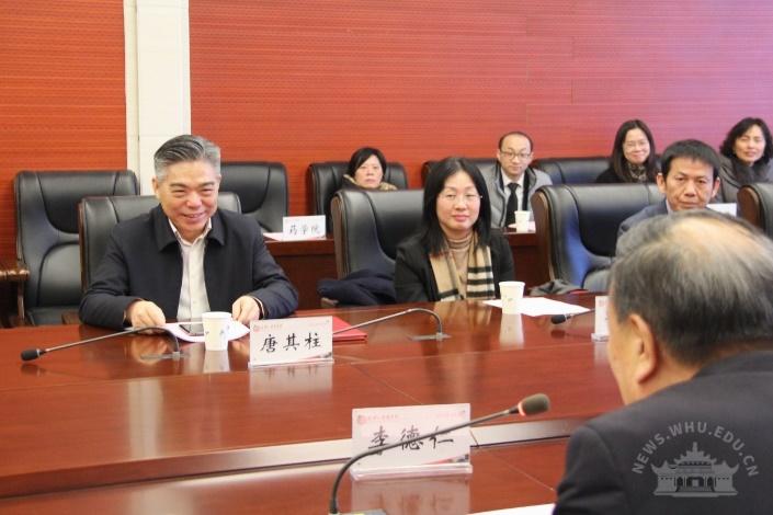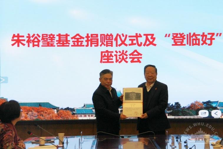 新闻网讯(通讯员苏航)12月29日上午,朱裕璧基金捐赠仪式及“登临好”石刻拓片座谈会召开。副校长唐其柱、朱裕璧的亲属李德仁院士夫妇出席会议。