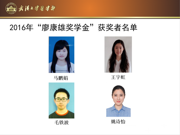 9月13日,医学部2016年迎新大会在医学部体育馆隆重举行。医学部党工委副书记蒋明宣读“向近敏教育基金奖”、“廖康雄奖学金”和“魏启赞励学金”获奖名单。“向近敏教育基金”代表袁光明校友、“廖康雄奖学金”资助人廖康雄校友、“魏启赞励学金”资助人魏启赞校友分别为15位学子颁奖,希望他们再接再厉、乘势发展;同时也鞭策其他学子以他们为榜样,积极求学,实现人生的梦想。